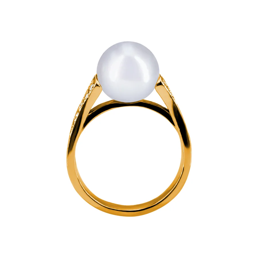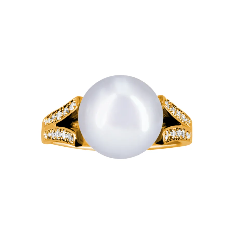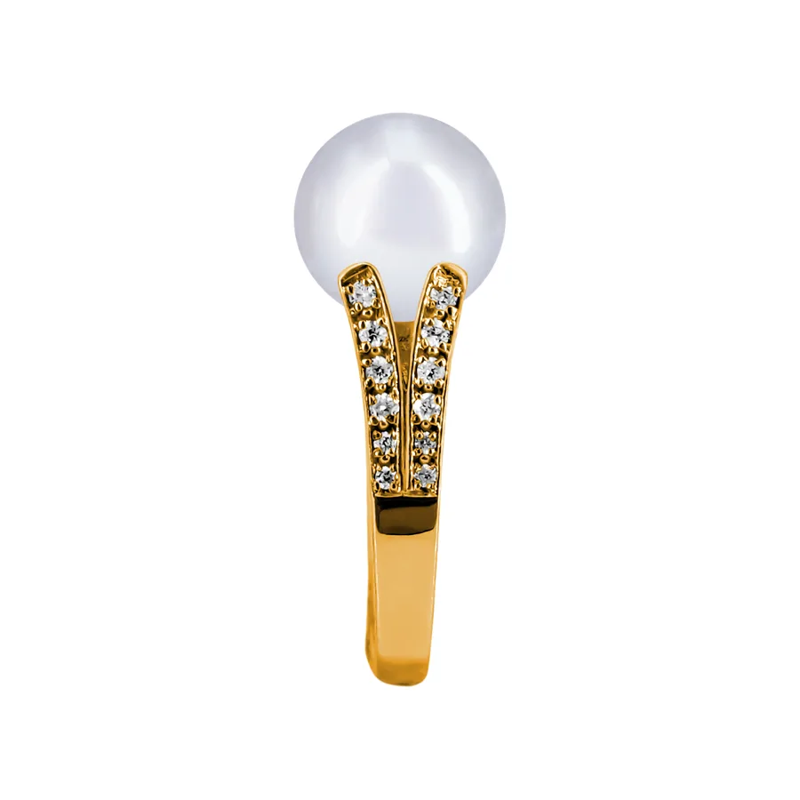 💍 טבעת פנינה קלאסית עם צדדים משובצי יהלומי מעבדה ב-2 גדלים בסך כולל של 0.15 קראט.