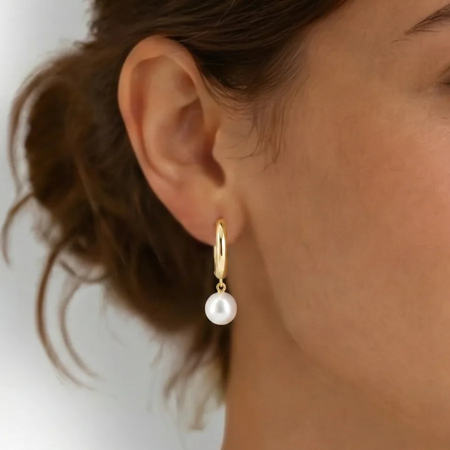 ✨חישוק עדין (14 מ״מ קוטר) מזהב עם פנינה קלאסית למראה נקי ואלגנטי.