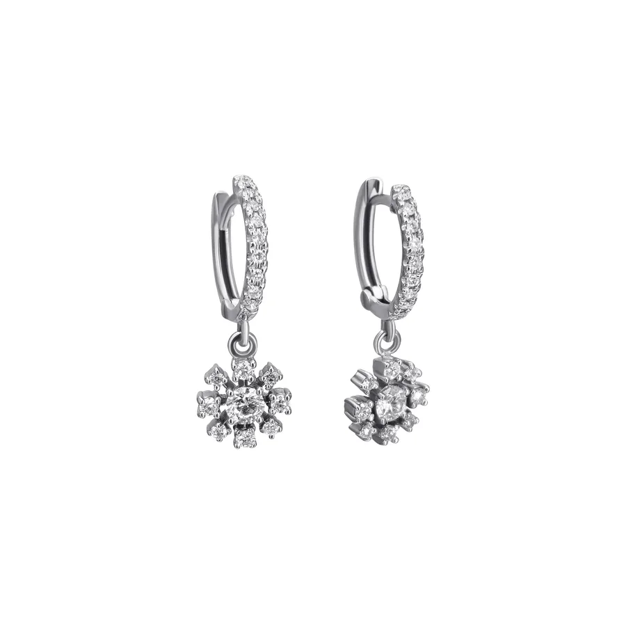 פרח יהלומי מעבדה בזהב לבן, תלוי על חישוק ג’יפסי זהב לבן משובץ גם הוא ביהלומי מעבדה (סה״כ 0.45 קראט) - שילוב של רוך ונוכחות.