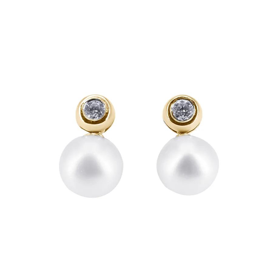 עגילי יהלום קלאסיים מזהב בשילוב פנינה– יוקרה עדינה