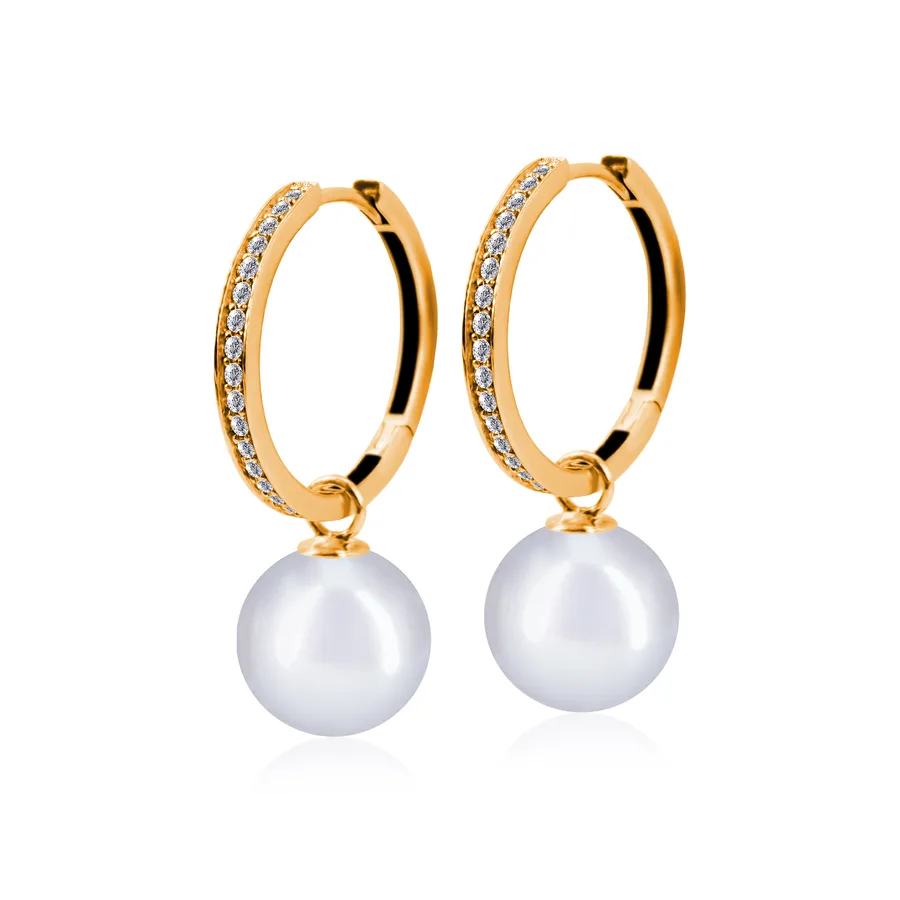 עגילי חישוק זהב עם יהלומים ופנינים – שילוב מושלם של קלאסיקה, ניצוץ ועדינות