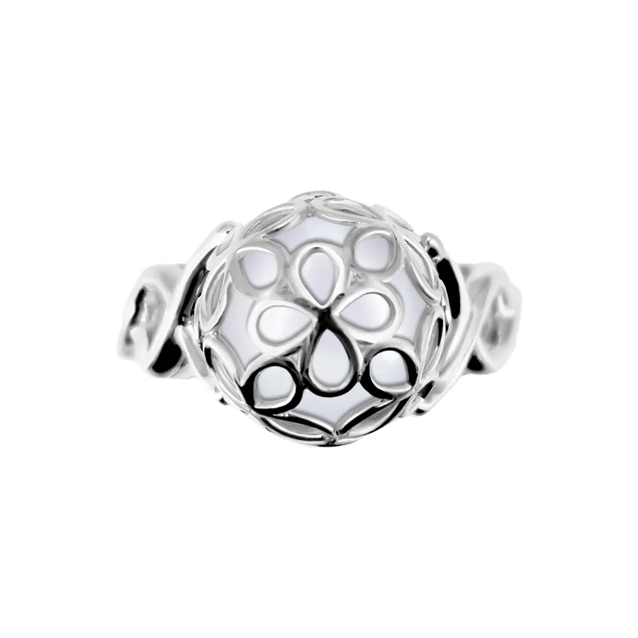 טבעת פנינה בעיצוב פרחוני כסוף ומיוחד