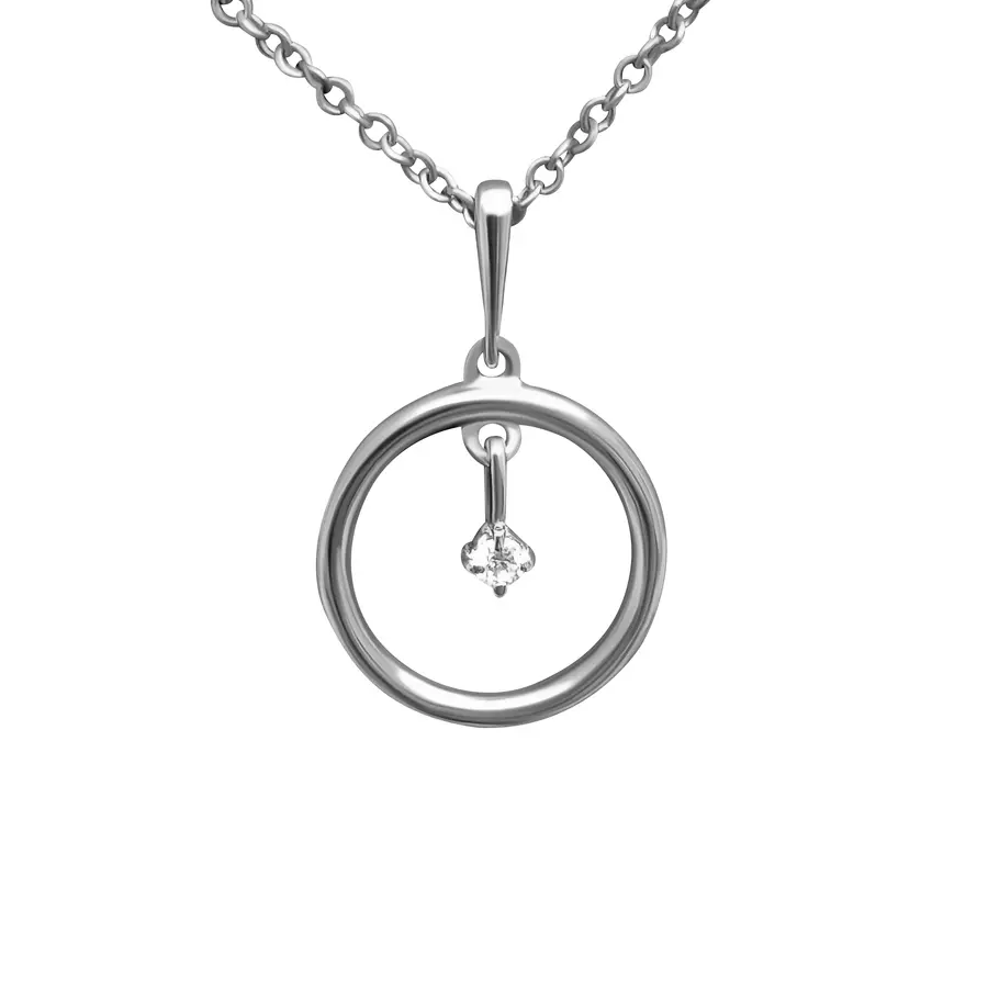 שרשרת כסף אלגנטית בעיצוב עדין עם תליון חישוק שבמרכזו זרקון תלוי ומנצנץ.