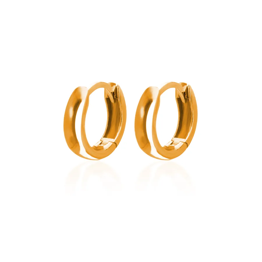 עגילי זהב חישוק/תלויים בקוטר 11 מ״מ, בעיצוב מעט רחב שמדגיש את הנוכחות מבלי לאבד את האלגנטיות.